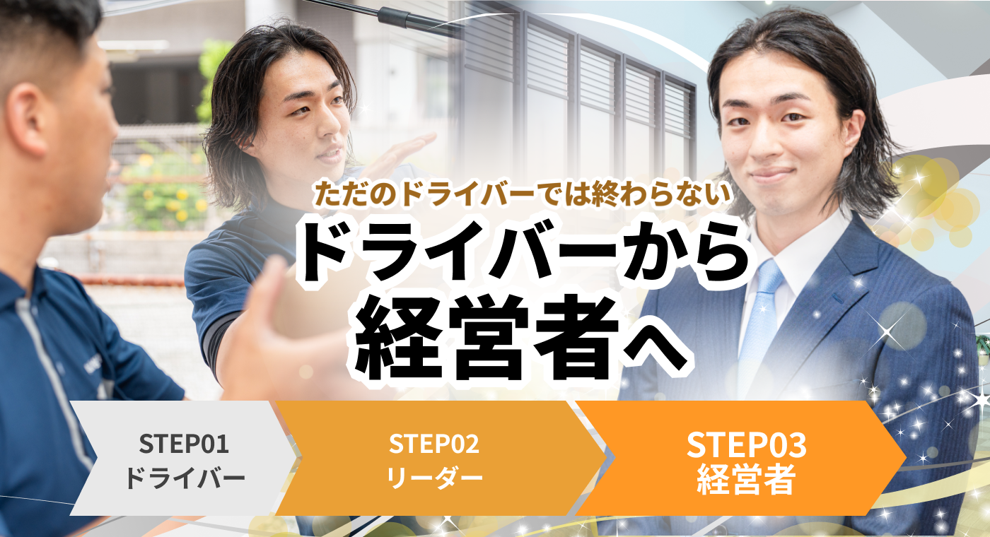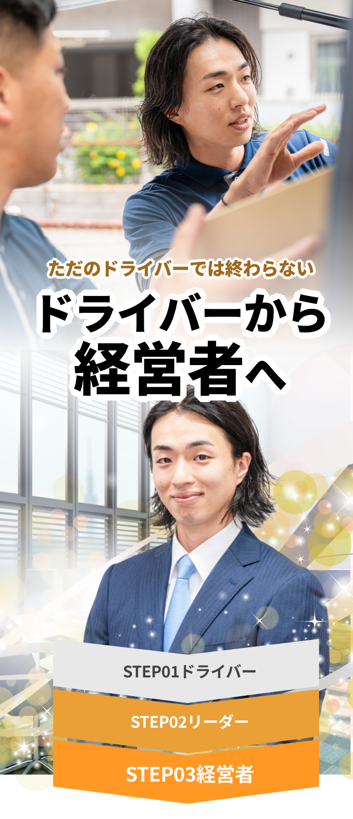 「ドライバー」の先にある「経営者」という明確な目標が持てます。日々の業務にも目的意識が生まれ、高いモチベーションで働くことができます。